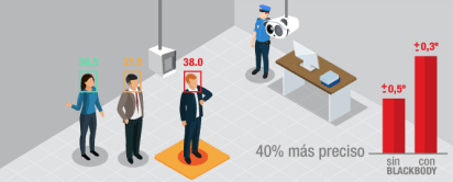Sistema que aumenta en un 40% la precisión de medición de temperatura, complementando a la cámara termográfica con el elemento de calibración Blackbody. Este dispositivo emite una temperatura determinada de forma constante que la cámara usa como referencia, permitiéndole hacer una medición mucho más precisa.